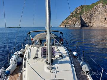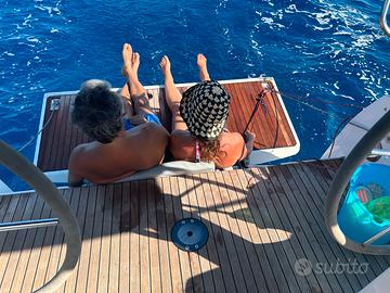 1 letto matrimoniale + 2 alla francese;toilette con doccia e WC elettrico;dinette con cucina e frigo; Randa e Genoa avvolgibili;VHF Garmin + VHF portatile;GPS con Pilota automatico Plotter e cartografia; Salpa ancora elettrico;Doppia timoneria; Passerella;Spiagetta con scaletta bagno;doccia esterna