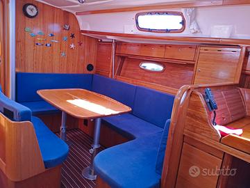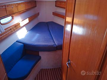 Pronta alla navigazione grazie alle costanti cure e aggiornamenti del suo proprietario e dotata di randa del 2022 avvolgibile nell'albero. Il Bavaria 39 Cruiser è un'imbarcazione versatile e robusta, apprezzata per le sue caratteristiche di navigazione, la spaziosità degli interni e le finiture curate. BUONE CONDIZIONI + COMMISSIONI DI AGENZIA INTERNI 3 cabine e 2 bagni Cabina armatoriale a prua con letto matrimoniale a V, seduta a murata, armadio a 2 ante e bagno privato completo di lavabo, wc marino mauale e doccia. Cabina poppa dx con letto matrimoniale, seduta a murata e armadio Cabina poppa sx con letto matrimoniale, seduta a murata e armadio Dinette convertibile in 2 cuccette con tavolo abbattibile, divano a C e panca contenitore centrale Cucina a murata completa di doppio lavello, piano cottura con 2 fuochi a gas, frigorifero a pozzetto e forno Bagno di poppa sx completa di lavabo, wc marino manuale e box doccia STRUMENTAZIONE Bussola Log Ecoscandaglio Radio VHF Strumento del vento Pilota automatico Raymarine GPS chartplotter Garmin Display Raymarine Tridata Display Raymarine Smart Pilot Display Raymarine Wind Salpa ancore elettrico con comando prua Boiler Autoclave Pompa di sentina elettrica e manuale Inverter Caricabatterie Batterie servizi 2x 140 Ah Batteria avviamento 100 Ah Altoparlante interno Altoparlante pozzetto 2x ARMAMENTO Pozzetto in teak con doppio gavone Teak spiaggetta poppa Sprayhood Bimini Tavolo centrale pozzetto contenitore Winch manuali 4x Avvolgifiocco Furlex Avvolgiranda nell'albero Pod strumentazioni timoneria con ruota Ancora Delta 20kg con catena 50m da 8mm Doppio musone ancora Scaletta bagno retrattile Passerella Barra timone di emergenza Scaletta ausiliaria Parabordi con calze Copri oblò Copri winch Presa elettrica da banchina VELE Randa avvolgibile Genoa avvolgibile