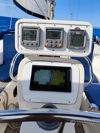 o VHF, AIS passivo; strumentazione vento, bussola, autopilota e plotter cartografico Garmin 12" GPSMAP touch in rete NMEI.