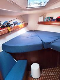 Imbarcazione a vela di 12 m, in buono stato di manutenzione generale, sicura e ben equipaggiata, immatricolata per 8 passeggeri. Prontissima per vacanze e navigazione a vela, con randa, genoa e gennaker in buone condizioni. Motore 50 CV e saildrive sostituiti nel 2019 con nuovi di fabbrica (oggi 950 ore). Dotata di ampi pannelli solari (2x75 W), 3 batterie servizi + batteria Optima per motore, di un ampio frigorifero a pozzetto, di 2 serbatoi di acqua da 150 lt ciascuno, di uno per il gasolio da 140 litri e di tender con motore, è l'ideale per lunghe permanenze in mare o in rada, con un'autonomia elettrica di oltre 3 giorni col frigorifero in funzione. Il pozzetto esterno, rivestito in tek, ha cuscinerie su misura, un grande bimini e lo sprayhood. In crociera ha spazi e servizi comodi per 6 passeggeri, con 3 cabine doppie, 2 bagni, scaldabagno motore ed elettrico, cucina nautica 3 fuochi e forno, lavandino 2 vasche, dinette con tavolo e divanetti. Batte bandiera Slovena (licenza navigazione rinnovata 2025).