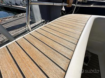 Doppia timoneria, pozzetto in teak, tavolo pieghevole centrale ; Autopilota Raymarine ST6001, stazione vento ST60, GPS + 3 plotter Raymarine ; VHF DSC Raymarine, AIS 700, log, ecoscandaglio e tridata ST60 ; Caricabatterie Quick SBC 500, inverter 1000W, 4 batterie (3 servizi + 1 motore) ; Boiler Quick 30L, pompe di sentina elettriche e manuali, impianto 12V/220V ; Tender incluso, doccia esterna calda/fredda, passerella e luci di cortesia