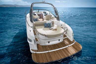 Bavaria S29 Nuova categoria CE B6/C8 Dispone di una postazione di guida ergonomica e ben organizzata, ventilazione automatica del vano motore, ampio spazio sottocoperta pozzetto, piattaforma da bagno maggiorata. La cucina a bordo offre un frigorifero da 50 litri, un piano cottura in vetroceramica e un elegante lavello in acciaio inox con pratico coperchio. Ampia zona giorno, ma anche una spaziosa cabina doppia a poppa con letti lunghi due metri e un bagno funzionale, una pratica panca nella cabina posteriore lo rende ancora più accogliente e confortevole. Scheda tecnica: Lunghezza scafo 8,5/ ft 9,52 mt (inclusa piattaforma da bagno) larghezza 2,99 mt, serbatoio carburante (circa) 520 lt, serbatoio dell'acqua (circa) 135 lt, cabine 1. Prezzo listino con allestimento standard a partire da: Motorizzazione Volvo Penta benzina (S) 1x V8-350 5,3L EVC 2.0 with DPS-D Drive (1x 350 hp / 1x 26 € 137.900,00 Motorizzazione Volvo Penta Diesel engines 1x D4-300 EVC 2.0 with DPI Drive (1x 300 hp / 1x 221 kW) € 165.600,00 Motorizzazione Mercruise benzina incl.EC 1 x 6.2L -350 Smart Craft with Bravo Three Drive (1x 350 hp / 1x 261 kW) € 142.850,00 Motorizzazione Mercruiser benzina 2 x 4.5L- 250 Smart Craft with Bravo Three Drive (2x 253 hp / 2x 186 kW) (INCL.EC) € 156.600,00
