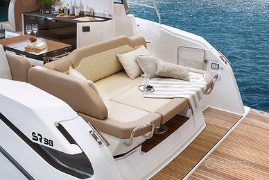 BAVARIA SR38 NUOVA Forma slanciata dello scafo, ampie superfici vetrate nella sovrastruttura e tanto spazio a prua e a poppa. Oltre alla classica versione hardtop, il BAVARIA SR38 è disponibile anche in versione aperta, con parabrezza basso. il tetto rigido si trasforma in un bimini stabile con tettuccio apribile open top. Tutti gli strumenti sono a portata di mano e la visuale è perfetta a 360 gradi. Ampie passerelle per muoversi comodamente e in sicurezza sul ponte, oltre a un ampio prendisole sul ponte di prua, tavolo abbassabile. ampio letto matrimoniale o in cuccette separate. Sul divano lungo 1,90 metri della cabina armatoriale potrete anche utilizzarlo come terza cuccetta, la seconda cabina doppia con un ampio letto di 2,19 x 1,99 metri si trova a prua, questa può essere installata come cabina chiusa e separata o in una configurazione aperta, bagno con cabina doccia separata. Scheda tecnica: Lunghezza scafo 10,87/ft 12,28 (inclusa piattaforma da bagno) larghezza 3,85 mt, serbatoio carburante 500lt, serbatoio dell’acqua 240lt, cabine 2. Prezzo listino con allestimento standard a partire da: Motorizzazione Volvo Penta benzina 2x V8-350 5,3L EVC 2.0 with DPS-D Drive (2x 350 hp / 2x 261 kW) Versione HT € 299.300,00 - versione Open € 290.900,00 Motorizzazione Volvo Penta Diesel engines 2x D4-300 EVC 2.0 with DPI Drive (2x 300 PS / 2x 221 kW) Versione HT € 344.500,00 – versione Open € 336.100,00 Motorizzazione Mercruiser Benzina 2x 6,2L – 350 Smart Craft with Bravo Three Drive (2x 350 hp / 2x 261 kW) Versione Ht € 307.900,00 – versione Open € 299.500,00.