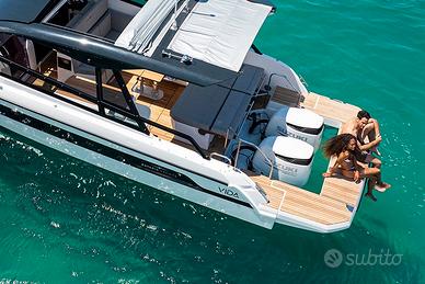 BAVARIA VIDA NUOVA Con pozzetto con un'innovativa piattaforma da bagno, con fuoribordo Suzuki, con un pozzetto gigantesco con angolo bar, un ampio tavolo da pozzetto e un comodo prendisole a poppa, con una nuova piattaforma da bagno walk-around di BAVARIA YACHTS a poppa è raggiungibile sia da sinistra che da dritta, numerosi vani portaoggetti, tetto scorrevole in tessuto sopra il pozzetto, cabina con bagno, wc e doccia, audio a bordo: il sistema JL con altoparlanti a prua e nella zona lounge. Scheda tecnica: Lunghezza scafo 9,93 /ft 11,19 (inclusa piattaforma da bagno) larghezza 3,43, serbatoio carburante 700 lt, serbatoio dell’acqua 180 lt, cabina 1, bagno 1. Prezzo listino con allestimento standard a partire da: Motorizzazione 2x Suzuki DF200AP – Drive-By-Wire (white) € 199.00,00 Motorizzazione 2x Suzuki DF250AP – Drive-By-Wire (white) € 210.100,00 Motorizzazione 2x Suzuki DF300AP – Drive-By-Wire + Lean-Burn-Technology (white) € 217.300,00 Motorizzazione 2x Mercury V8 250 – Active Trim + Vessel view (black) € 215.300,00 Motorizzazione 2x Mercury V8 300 – Active Trim + Vessel view (black) € 224.000,00