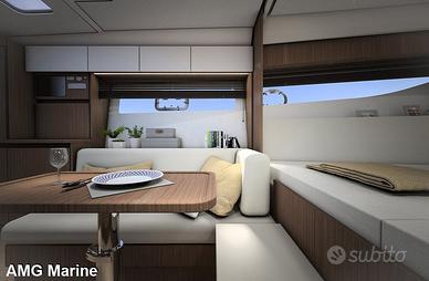 La vita a bordo si svolge sul ponte Il BAVARIA SR35 è disponibile in due versioni: la classica versione HT hardtop e la OPEN TOP con un parabrezza abbassato. Come a bordo di tutti gli yacht a motore della linea BAVARIA SR, lo sviluppo del BAVARIA SR35 si è concentrato sullo spazio per la vita sul ponte. Sottocoperta, il BAVARIA SR35 impressiona anche con un concetto di spazio ben studiato con spazio generoso per quattro persone. Interni Sottocoperta, il concetto del BAVARIA SR35 offre molta luce, molto spazio, quattro posti letto, una cabina e un ampio salone. Esterni La prua con il suo generoso prendisole è il luogo perfetto per rilassarsi, con la comoda cuscineria che si estende su tutta la superficie della struttura. Equipaggiamento Lo scafo lungo 11,40 m e largo 3,46 m è stato ottimizzato per manovrabilità rapida e sicura dagli esperti dello studio di architettura navale Micad. AMG Marine Concessionaria Ufficiale Bavaria Yachts, Italmar, Romar, Mercury, Suzuki, Conarg Marine, Cresci Rimorchi, Spoleto Rimorchi, Garmin. Via Aurelia 2935 Torreinpietra 0054 Fiumicino Roma Tel