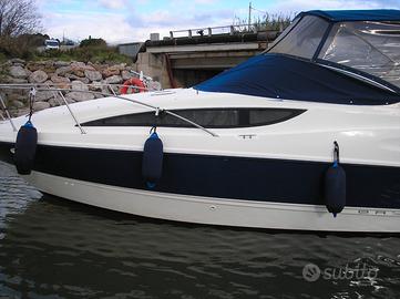 Bellissimo e perfetto Bayliner natante americano come nuovo, refitting 2025/26,usato pochissimo, FULL OPTIONAL, tenuto maniacalmente, sempre in capannone tranne luglio ed agosto, 5/6 posti letto ed 8 di portata massima, due cabine UNA CON PORTA altra con tenda, 2 letti matrimoniali. Motore Mercruiser 5700 cc 8V 350 Mag iniezione elettronica con meno di 400 ore appena rimontato, e piede Bravo 3 e DOPPIA ELICA CONTROROTANTE REVISIONATI COMPLETAMENTE 2025 /26 ed appena rimontati! Misura 8,90x3,00 senza limiti di navigazione dalla costa, certificato CE di idoneità del 29-04-2008. PRONTO per il varo, con possibilità di POSTO BARCA ed auto di fronte all'Elba fino al 12/26 Completamente revisionato nel 2025, tv ed antenna nuovi, sedute esterne in legno nuove, maceratore e pompa nuova, CB nuovo ecc. ACCESSORI INTERNO: ARIA CONDIZIONATA, BAGNO con WC ELETTRICO 2024, doccia con acqua calda e tenda, seconda doccia esterna, attacco impianto acqua pressure per banchina con acqua corrente, 3 batterie da 100 e 120 ah 2nuove,TV DA 20 con digitale terrestre ed antenna esterna, cucina con due fuochi elettrici a 12 V o 220 in banchina e ad alcool, forno a micronde, frigo, svariati cassetti e gavoni, barometro multifunzione, 3 PASSA UOMO E 4 OBLO APRIBILI, altezza interna circa 1,90, specchio intero in cabina e specchio in bagno, BOILER ACQUA CALDA, corrente a 12V e 220, presa corrente banchina e carica batterie, piccolo armadio in cabina, materasso matrimoniale in lattice su misura nuovo, serbatoio acqua 120 lt, serbatoio acque scure 50 lt. con doppio sistema di svuotamento, grande tavolo fronte marcia con 2 divanetti per 4 persone in cabina di fronte alla cucina, stereo con cd e casse interne ed esterne. ACCESSORI ESTERNO: ELICA DI PRUA BOWTRUSTER, VERRICELLO CON 50 MT DI CATENA NUOVA 2023, ANCORA 10 KG. FORCE, CONTAMETRI CATENA IN PLANCIA, LUCI SUBACQUE, 3 cappottine: camper alta, invernale bassa, estiva. Prezzo 56.500,00 (speso circa 18.000,00 per refiting 2025 ferma da 10/24)