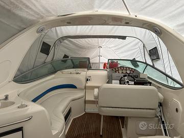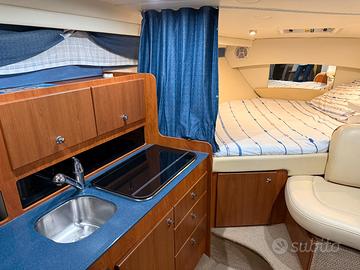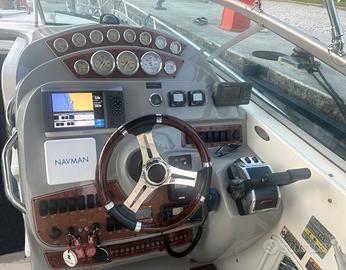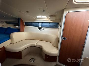 Cantiere Bayliner (USA) Modello Cruiser 300 Lunghezza Mt 9.65 (Natante Non Immatricolato) Larghezza Mt 3,00 Anno di Produzione 2007 Motori EFB Mercruiser MCM 4.3 MPI 2x225 CV Ore Motori 480 ca Alimentazione Benzina Trasmissione Bravo lll DP Manutenzioni Tutte Es. da Ass. Ufficiale OTTIME CONDIZIONI GENERALI Capottina Completa Camper Copripozzetto Copertura Invernale Cuscinerie Interne ed Esterne Complete Doppio Frigo Forno Microonde Pozzetto e plancia di poppa in Teak Cabina Matrimoniale di Prua Cabina Matrimoniale di poppa Bagno Separato con doccia Verricello elettrico con contametri Gps-Eco-Vhf Impianto Tv Generatore di Corrente Aria condizionata Telecamera Motori Armatore particolarmente attento e scrupoloso nelle manutenzioni e nella cura del natante. Si esamina eventuale permuta da Valutarsi info@errenautica.it Alberto Mostra numero NB : la dotazione tecnica,e gli accessori potrebbero in alcuni casi differire dall'effettivo equipaggiamento dell'imbarcazione o natante, la Errenautica declina ogni responsabilita' per eventuali involontarie incongruenze, il presente annuncio non e' da considerarsi in alcun caso documento contrattuale,l'acquirente ha il diritto di ispezionare o di far ispezionare per suo conto e a suo carico il bene descritto, da tecnico specializzato di sua fiducia. Per Ricerca Generica :Cranchi-Sessa-Capelli-Mano'Marine-Saver-Gio'Mar-Trimarchi-Selva Ranieri-Ranieri International-Mingolla-Marino-Marinello-Pursuit-Boston-Bertram-Beneteau-Jeanneau-Syros-Idea Marine-Faeton Aquabat-Aquamar-Orizzonti-Gobbi-Absolute-Azimut-San Lorenzo-RanCraft-Riva-Pershing-Tiara-Sea ray-Doral-Bayliner-Chaparral-Monterey-Criss Craft-Plastik Space-Bavaria-Fiart-Kanic-Four Winns-Maxum Marine-Fjord-Scarani-Baja Marine-Abbate-Primatist-Cruiser Yacht-Della Pasqua-DC-Carnevali-Quicksilver-Natante-Cruiser-Non Immatricolata-Crociera-Barca da Pesca
