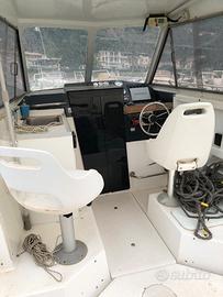 Barca fantastica per la pesca ed il diporto, molto potente bassi consumi , gramin 10 pollici combinato con sonda fino a 300 metri, impianto fotovoltaico che tiene le batterie sempre efficienti, dieci porta canne , vasca vivo, vasche pescato, vhf,radio fm marina con altoparlanti moltpotenti, motori 2 Suzuki 140 cv con 550 ore di moto .