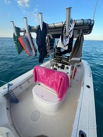 Bayliner Trophy 1903 (2006) Honda BF 150 (2019- 350 ore) Composizione Consolle Garmin Ecomap 70 DV Garmin 923 xsv Sonda Garmin GT 51 Garmin Fusion MS-RA55 + 2 Speaker VHF Raymarine Temporizzatore vasca del vivo Motore e componenti consolle tutti collegati tramite NMEA 2000 e gestibili direttamente dai 2 apparati (compreso serbatoio carburante) Bussola Danforth MOTORE ELETTRICO DI PRUA MINN KOTA RIPTIDE TERROVA 80/IP LINK-72" BT Batteria SH Lithium 24V 150 A caricabatterie da casa con trasformatore e controllo dello stato di ricarica da App telefono T-Top Fishmaster con 4 reggicanna a riposo estensione del telo ombreggiante poppa e prua, e scatola elettronica con serratura. 6 reggicanna a riposo, 2 per murata con diverso orientamento e 2 sul sedile di guida Vasca del vivo di fabbrica con temporizzatore per mantenere vive le esche anche per diversi giorni Gavone di prua con alloggio per batteria minn kota 2 gavoni sulle murate di dritta e di sinistra 1 gavone sotto consolle con ispezione impianto elettrico (revisionato 2024) 1 gavone stivaggio esche,fili, piombi e minuteria sotto il sedile di guida 2 gavoni di poppa 1 a dritta l’altro a sinistra con alloggio di 2 batteria AGM da 100 A l’una 4 alloggi esterni per canne,raffio,guadino,mezzo marinaio, 2 nella murata di poppa di dritta e 2 in quella di simistra Doccetta con acqua dolce con serbatoio da 80 litri Illuminazione a led a prua, pozzetto di poppa e luci subacquee specchio di poppa Serbatoio benzina 208 litri Cuscineria rifatta nel 2023