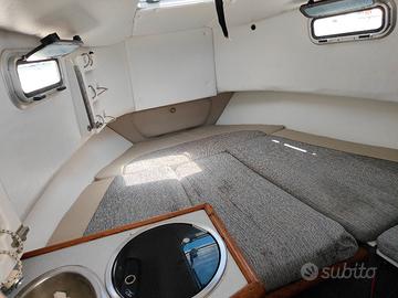 Barca in buone condizioni, ottima per la pesca e per gite anche con pernottamento, omologata per 8 persone. Ampia cabina con due posti letto, cucinino, lavabo, cuscineria, ampi gavoni e porta canne da trasporto. Ampia poppa con gavoni e vasche del vivo, dotata di porta 4 canne fissi e 2 girevoli e 5 da trasporto, vasca del vivo e pompa acqua salata, doccia Tendalino copri poppa, tendalino per coprire la cabina comando. Scandaglio LAWRENCE HD LIVE E VHF. Luci notturne e faro direzion abile per navigazione notturna. Dotazioni di bordo per oltre le 6 miglia, zattera gonfiabile. Vasca del vivo e 3 pompe sentina, tavolino. Motorizzata con entro fuoribordo Mercruiser 350 mpi benzina, revisionato 2025, 280 ore di navigazione. Plana a basso tenore di giri , flap di poppa consumi ridotti. Dotata di motore ausiliario Honda 10hp.