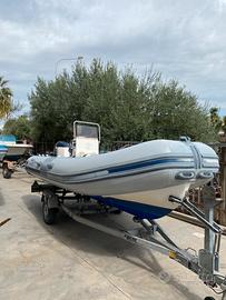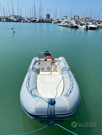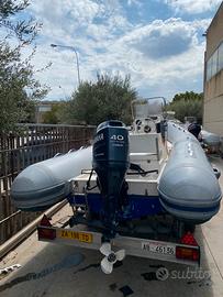 Vendo gommone, con motore 40/70 che si può guidare senza patente e perfettamente funzionante, completo di cuscineria, doccetta con serbatoio, impianto stereo con casse, pompa di sentina e tendalino.