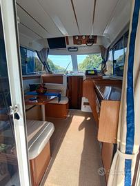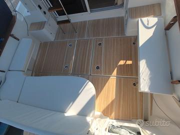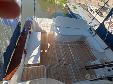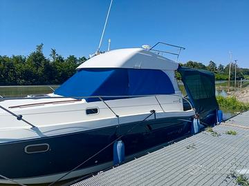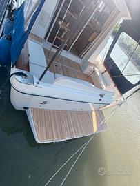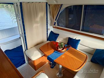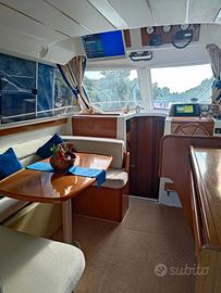 Barca totalmente refittata nel 2024. Dalle tappezziere interne, pareti, cuscinerie, legni, impianto elettrico, sistemi elettronici, motore Volvo 260hp Diesel D-4 con solo 1200 ore, 4 cilindri commonrail, cambio-invertitore elettronico, in linea d'asse, revisione totale compresi olii e filtri, anche dell'invertitore, 4 batterie. Carena riportata a zero (sabbiatura) per trattamento preventivo antiosmosi con resine epossidiche Veneziani. Lucidatura totale, e Gommadeck (finto teak) in pozzetto e plancetta. Luci cortesia blu. Pilota automatico Raymarine, elica di prua, GPS cartografico ed ecoscandaglio Humminbird Helix 9', VHF, telecamera motore, televisione a led, WC elettrico (nuovo), boiler per acqua calda, doccia in bagno e in pozzetto, plancetta di poppa con scaletta telescopica. Cabina armatoriale con letto matrimoniale, 3 ampi armadi con luci interne ad accensione automatica, dinette trasformabile in altro letto matrimoniale, cucina completa, frigo, fornelli a gas, ampi vani di cambusa, fly bridge con ampio prendisole, tendalino pozzetto chiusura totale, reti ombreggianti alle finestre e molto altro ancora...