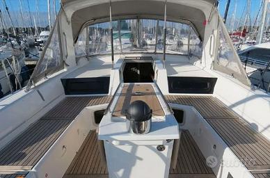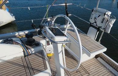 Dimensioni Lunghezza totale:15.94m Altezza massima ponte:18.33m Baglio:4.8m Serbatoi Serbatoio di acqua pulita:1 x 600 l Serbatoio di carburante:1 x 200 l Serbatoio acque nere:1 x 800 l Motorizzazione Costruttore motore:Yanmar Modello motore:4JH110 Potenza totale:110 CV Ore motore:346 Tipo di motore:Entrobordo-EB Carburante:Diesel Sistemi di navigazione Pilota automatico a bordo - B&G NAC3 Central di navigazione - B&G Girante / anemometro in palo di carbonio Ripetitore nel pozzetto in ogni posto di barra - B&G Triton 2 GPS / lettore di carte nel pozzetto in ogni posto di barra - Zeus3 7 Cartografia elettronica - Navionics Silver Transponder AIS (emettitore ricevitore) - AIS 500 VHF ASN sulla tavola delle carte - B&G V100 Altoparlante VHF nel pozzetto Sistema audio Fusion RA-70N + HP Altoparlanti nel pozzetto Televisione nel salone + antenna in cima all'albero Beacon di emergenza Albero Performance in alluminio montato sul ponte Boma di tipo canoe, vernice grigia Pacchetto First Line in alluminio Rigging statico in cavi Dyform Randa a stecche complete - North Sails 3DI Ocean Rullo dell'albero e carrelli per la randa Sistema di presa di reef monofilo per la randa Sacca lazy per la randa - North Sails Lazy jacks in Dyneema per la randa Rullante per genoa con tamburo sul ponte - Facnor Flatdeck Foc autovirevole / stecche - North Sails 3DI Ocean Copertura protettiva anti-UV per il genoa Foc North Sails su rullante (non autovirevole) Rigging di spinnaker asimmetrico Spinnaker asimmetrico avvolgibile (stesso rullante del Code 0) Rullante North Sails Code 0 e Profurl Nex 5.0 Patino posteriore regolabile (idraulico) e manometro - Sailtec