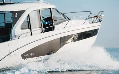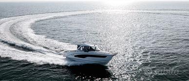 Dalle linee slanciate e dinamiche, la nuova Antares 9 vanta una silhouette elegante esaltata da un listone argentato e dalle lunghe vetrate dello scafo.