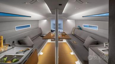 La coperta è stata progettata per una manovrabilità intuitiva, sia in crociera che in regata, con un pozzetto spazioso e ben organizzato. Sottocoperta, l'attenzione al dettaglio si traduce in interni luminosi e funzionali, con finiture di qualità e soluzioni intelligenti per lo stivaggio, garantendo una vivibilità sorprendente per una barca di queste dimensioni.