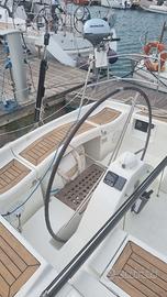 Dotazioni di sicurezza entro 50 miglia: zattera di salvataggio, 6 giubbotti automatici con ombelicale, estintori e pronto soccorso. Strumentazione completa: Raymarine Axiom 7" (2023) in pozzetto, GPS RL70C al carteggio, pilota automatico elettroidraulico, ecoscandaglio, log e VHF. Vele HsXP 2023 (genoa avvolgibile e randa full batten), lazy bag 2023 e circuito spinnaker completo con tangone.