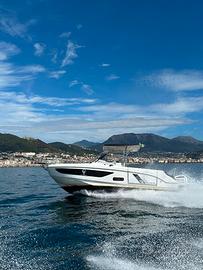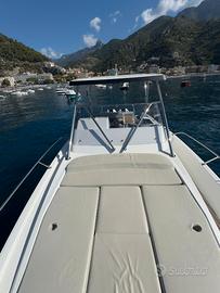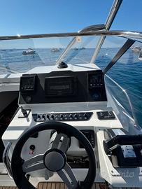Modello ricercatissimo, perfetto per crociere giornaliere e weekend in totale comfort grazie ai suoi ampi spazi, alla doppia cabina e al potente ma affidabile doppio motore Honda da 250 cavalli.