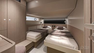 Progettato attorno ad un approccio innovativo del layout, dell'aspetto e dell'ergonomia dei fast cruiser e costruito attorno alla profonda conoscenza del marchio riguardo le aspettative dei suoi clienti, questo nuovo yacht offre una piattaforma incredibilmente versatile che conserva la pura etica del concetto di Gran Turismo.