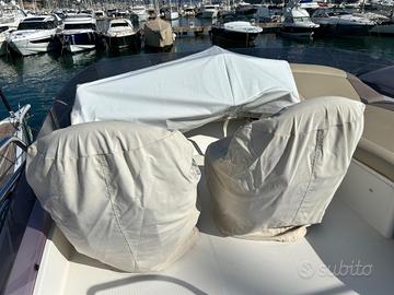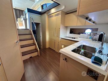 Frigo cucina nuovo, piastra cucina fly nuova, sostituito gruppo a/c salone, tagliando motori e pod, carenaggio e lucidatura, sostituite batterie e verifica dell'impianto elettrico, revisione passerella, nuova antenna TV.