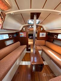 Beneteau Oceanis Clipper 321 ANNO: 1999 LUNGHEZZA: 9.95 m LARGHEZZA: 3.45 m PESCAGGIO: 1.30 m PESO A SECCO: 1360 kg DISLOCAMENTO: 4400 kg NATANTE MOTORIZZAZIONE: YANMAR 3GM30 TRASMISSIONE: LINEA D'ASSE POTENZA: 17,5 KW CARBURANTE: GASOLIO SERBATOI CARBURANTE: 60 l ACQUA DOLCE: 200 l CABINE: 3 WC: 1 RANDA: 1 FIOCCO/GENOA: 2 CON AVVOLGIFIOCCO WINCH: 5 STOPPER: 6 FORNO + 2 FORNELLI A GAS WC MARINO POMPA DI SENTINA ELETTRICA POMPA DI SENTINA MANUALE FRIGORIFERO CARICA - BATTERIE Altre dotazioni: bussola, strumento multifunzione Raymarine i70s + iTC-5 + trasduttore testa d'albero wind (2023), pilota automatico Raymarine ST4000 plus con trasduttore angolo di barra (codice M81105), radio VHF fisso marca Icom modello IC-M330 GE Nero 25W con GPS e distress, Stazione vento, Ancora tipo Bruce con catena 50 mt circa, Autoclave, 3 x Batterie Servizi Fiam 12FGL70 (2022), 1 x Batteria avviamento Optima, Carica batterie Victron Energy blue smart IP22 30A (2023), Doccia esterna acqua fredda/calda, 2 Pannelli Solari 150W cadauno di dimensioni 670x1190 mm (2023) su bimini (removibili con cerniera) + solar charge controller, plancetta di poppa costruita ad hoc con scaletta di risalita, salpa ancora elettrico con telecomando, Boiler, 2 cuscini per seduta pozzetto in ottimo stato, bimini, mezzi di sicurezza: salvagenti per 8 persone omologati 100N, fuochi a mano (2), razzi a paracadute (2), 2 cime di ancoraggio con molle ammortizzate, 8 parabordi con copriparabordi (qualcuno da sostituire), 3 lenzuola fatte ad hoc e sagomate seguendo angoli della cuscineria, posate, pentole e attrezzi da cucina, libri uso e manutenzione originali Beneteau, cavo di alimentazione da banchina, mezzo marinaio, maniglia apertura serbatoio nafta, manovella per winch, ancora di rispetto, cono nero di segnalazione, salvagente anulare e cima regolamentare; boetta luminosa. Da sostituire antenna VHF Ulteriori foto disponibili su richiesta.