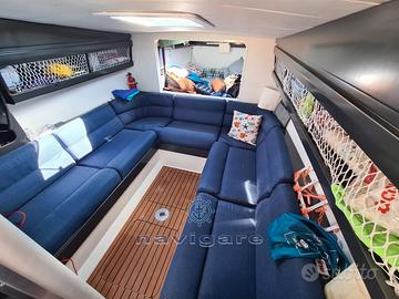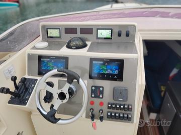 Vendo Benetti 40 Tecnomar Carena By Cougar anno 1989 refittato completamente nel 2022/22 rimotorizzato con 2 Yanmar 440 hp diesel 350 ore trasmissioni di superficie revisionate, flap idraulici con indicatori di posizione elettronici. Riverniciato interno e scafo strumentazione nuova, nuove prese a mare, nuovo verricello ancora 50 m catena. Nuovi sedili cuscineria tendalino. Interno vivibile cuccetta di prua dinette bagno cucina. Grande prendisole a poppa. Carena by Cougar grande sicurezza in mare anche formato. velocità max 48 nodi crociera 35/38 nodi. 2 set di eliche 4 pale e 5 pale nuove del 2022. Perfetta rimessata in capannone Visibile a Lecco. Pronta con carena portata a zero primer anti osmosi e antivegetativa nuova.