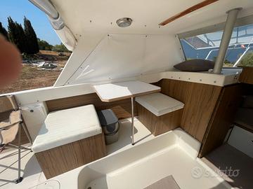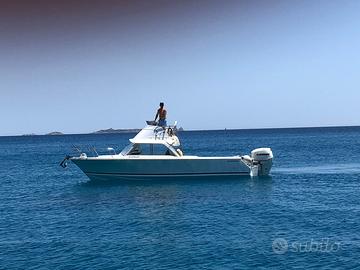 Barca oggetto di accurata manutenzione e nuova installazione come di seguito in elenco: - Impianto elettrico 12V e 220V; - Inverter; - Caricabatterie Victron; - Stacca batterie; - Impianto di alimentazione benzina compreso serbatoio in polietilene da 270 litri; - Impianto acqua con serbatoio da 130 litri; - Boiler acqua calda 10 litri; - Teli coperture esterne; - Cuscineria interna ed esterna; - Tappezzeria completa cabina; - Wc elettrico; - Arredi interni ed esterni; - Frigo; - Lavandino combinato con due fuochi; - Impianto gas; - 2 Pompe di sentina; - Tendalino di poppa e prua; - Luci di navigazione e varie altre. Oggetto di rimotorizzazione con doppio fuoribordo E-Tec 200 HO corredati di timoneria completamente nuova con circa 550 ore installati su bracket realizzato da personale altamente specializzato. Velocità di crociera circa 25 nodi, velocità massima circa 50 nodi. Pronta alla boa non necessita di alcun lavoro particolare. A disposizione per qualsiasi ulteriore informazione solo tramite contatto telefonico. Barca oggetto di accurata manutenzione e nuova installazione come di seguito in elenco: - Impianto elettrico 12V e 220V; - Inverter; - Caricabatterie Victron; - Stacca batterie; - Impianto di alimentazione benzina compreso serbatoio in polietilene da 270 litri; - Impianto acqua con serbatoio da 130 litri; - Boiler acqua calda 10 litri; - Teli coperture esterne; - Cuscineria interna ed esterna; - Tappezzeria completa cabina; - Wc elettrico; - Arredi interni ed esterni; - Frigo; - Lavandino combinato con due fuochi; - Impianto gas; - 2 Pompe di sentina; - Tendalino di poppa e prua; - Luci di navigazione e varie altre. Oggetto di rimotorizzazione con doppio fuoribordo E-Tec 200 HO corredati di timoneria completamente nuova con circa 550 ore installati su bracket realizzato da personale altamente specializzato. Velocità di crociera circa 25 nodi, velocità massima circa 50 nodi.