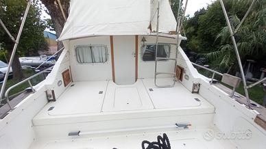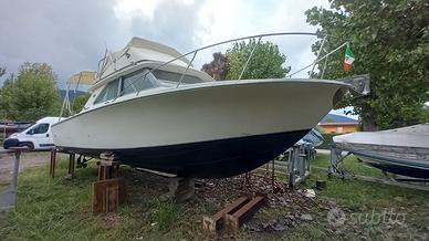 Cantiere Bertram (USA) Modello Fly 28 Lunghezza Mt 8,70 Larghezza Mt 3,35 Anno Di Produzione Scafo 1980 Motori Entrobordo Diesel Linea D'asse AB Volvo Penta 2 x 200 Cv Motori Sbarcati e Revisionati da Officina Specializzata. Sala Macchine Completamente Riaggiornata. Prese a Mare Nuove Impianto elettrico Sala Macchine Nuovo Carica batterie con cavo banchina Eliche Nuove Verricello Elettrico Nuovo Timoneria Nuova Cabina Matrimoniale a V di Prua Dinette Trasformabile Bagno Separato Plancia di Poppa con Scala Bagno Inutile spiegare le doti di costruzione dello scafo, in quanto note a livello mondiale,la V profonda della carena ,rende il Bertram 28 adatto ad affrontare mare impegnativo in tutta sicurezza, l'ampio pozzetto esterno di circa otto metri quadrati, lo rende ideale sia per la pesca e che per la tradizionale crociera. Buona l'altezza interna di quasi 2 Mt. E' possibile esaminare anche una eventuale permuta di NS Gradimento, con barca o gommone anche con motore senza patente. info@errenautica.it Alberto Mostra numero NB : la dotazione tecnica,e gli accessori potrebbero in alcuni casi differire dall'effettivo equipaggiamento dell'imbarcazione o natante, la Errenautica declina ogni responsabilita' per eventuali involontarie incongruenze, il presente annuncio non e' da considerarsi in alcun caso documento contrattuale,l'acquirente ha il diritto di ispezionare o di far ispezionare per suo conto e a suo carico il bene descritto, da tecnico specializzato di sua fiducia. Per Ricerca Fisherman :BostonWhaler-Tuccoli-Mako-Fountain-Wellcraft-Formula-Sailfish-Regulator-Extreme-Hydrasport-Cap Camarat-Viking-Pursuit-Triton-Tiara-Luhrs-Beneteau-Jeanneau-Riviera-Axpoar-Galeon-Albermarle-Caroline-Hatteras-Bertram-Capelli-Quicksilver-Tre B Craft-Pro Line-Sea Star-Cranchi-Ranieri-International-Mingolla-AlCustom-Cabo-Grady White-Bayliner-Trophy-Saver-Strike-Seaswirl Triper-Marino-Marinello-Sessa