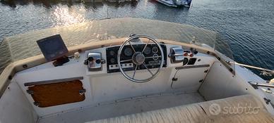 Contatto via whatsapp. Barca pronto uso. Prezzo leggermente trattabile solo dopo visione. Ridotto a euro 23.000,00. Bertram 28 fly 1974, 8.70x3.35x0.9m, 2x260cv mercuiser carb. 2004, 900 ore, entrobordo benzina linea asse. Crociera: 21 nodi. Max: 28 nodi. Assicuraz.motori scade luglio 2026. Serb. benzina 690 l. Serb. acqua 180 l. Doppi comandi,salpa ancore elettrico,presa 220V banchina,caricabatteria,2batterie,bussola,plancetta di poppa vtr,scaletta da bagno,2 pompe sentina automatiche,doccetta pozzetto,locale bagno con wc marino elettrico e lavabo,cucina gas,lavello,frigorifero,cabina letto matrim.,dinette trasformabile 2 letti,tavolo allungabile,ancora Bruce,GPS,Ecoscandaglio,RADAR,VHF,prese 12v. Sedia combattimento acciaio con schienale e poggiapiedi, cuscini. Ogni anno carena e tagliando completo motori; ogni 4 anni sostituiti riser e collettori. 2004: nuovi mercruiser, invertitori V-drive, eliche e assi maggiorati mm32. 2007: revisione impianto elettrico e carena (antiosmosi), lucidatura. 2016: trasduttore passante bronzo 1kw,Ecoscandaglio Lowrance,modulo potenza 1 kw (oltre 1000 metri). 2021 (refitting): sbarco, revisione totale e verniciatura motori; insonorizzazione sala macchine; revisione completa di: filtri acqua motore,invertitori, scatola timoneria,cavi/terminali impianto elettrico,attacchi carburante serbatoio;trattamento anticorrosione viti e bulloni,supporti motore,assi timoni;verniciatura sentina. Sostituiti: 2 batterie,bobine,cavi candele,riser,collettori,motorini avviamento,pompe acqua mare e ricircolo,cavi leve gas e invertitori,cavi timonerie,prese e scarichi a mare,passascafi e valvole antiblocco bronzo,tubo carburante RINA,caricabatterie,isolatore galvanico,2 pompe sentina automatiche. 2025: tagliando completo motori (cinghie,giranti,termostati,filtri benzina, olio e carburatore,candele, olio motore, riser, collettori),nuove batterie,pompe acqua mare e di ricircolo motori,carena,antivegetativa.