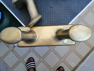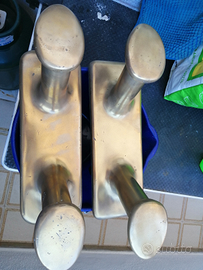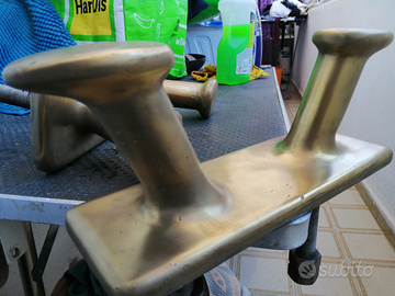 Vendesi splendida coppia di bitte in ottone massiccio, dimensioni delle basi cm. 30x11,altezza cm. 13, ideali per barche dai 10 metri in su, pronte da montare. Bellissimi oggetti vintage provenienti da barca d'epoca in demolizione. Spedizione in tutta Italia a mio carico