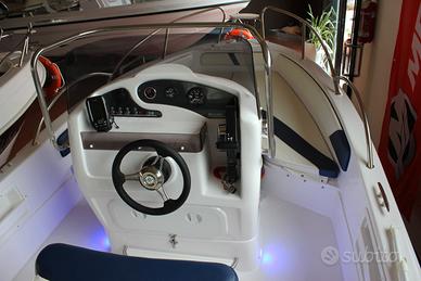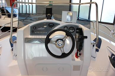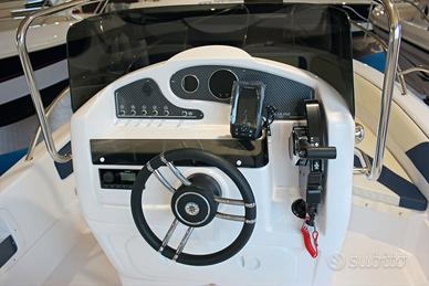 Luci di via | Asta 360° | 6 bitte | Cuscini a cellula chiusa | Impianto idraulico con doccia | Impianto carburante completo di serbatoio da 60 litri e indicatore livello carburante | Luci LED di cortesia in pozzetto | GPS/Eco Garmin Striker 4.2 Plus | Consolle abbattibile | Scaletta di risalita in acciaio inox | Volante con timoneria monocavo | Tavolino | Panca poppiera | Poggiapiedi | Pompa di sentina | Pozzetto autosvuotante statico | Musone in inox con carrucola e proteggi prua in inox | Tromba elettrica | Presa 12V e USB | Impianto elettrico con 1 batteria | Fascia colorata blu | Scafo inaffondabile | Acciai levigati senza saldature | Predisposizione verricello elettrico | Tasche laterali portaoggetti | Finiture di pregio