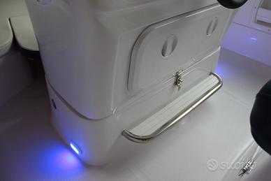 Luci di via | Asta 360° | 6 bitte | Cuscini a cellula chiusa | Impianto idraulico con doccia | Impianto carburante completo di serbatoio da 60 litri e indicatore livello carburante | Luci LED di cortesia in pozzetto | GPS/Eco Garmin Striker 4.2 Plus | Consolle abbattibile | Scaletta di risalita in acciaio inox | Volante con timoneria monocavo | Tavolino | Panca poppiera | Poggiapiedi | Pompa di sentina | Pozzetto autosvuotante statico | Musone in inox con carrucola e proteggi prua in inox | Tromba elettrica | Presa 12V e USB | Impianto elettrico con 1 batteria | Fascia colorata blu | Scafo inaffondabile | Acciai levigati senza saldature | Predisposizione verricello elettrico | Tasche laterali portaoggetti | Finiture di pregio