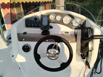 Accessori: luci di via,asta 360,cuscini, impianto idraulico completo di doccia, impianto carburante completo di serbatoio 60 litri e indicatore livello carburante, consolle abbattibile, scaletta risalita inox, volante con timoneria monocavo, tavolino,panca poppiera, pompa di sentina, pozzetto auto svuotante statico, musone inox con carrucola e proteggi prua inox, tromba elettrica,presa 12 v, impianto elettrico con doppia batteria, tendalino sole,telo copri barca, ecoscandaglio, dotazione sicurezza parziali entro 1 miglio, stereo nautico con 2 casse e presa USB.