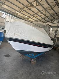 Barca open 5,80 m in ottime condizioni, usata solo nei tre mesi estivi e sempre rimessata al coperto. Motorizzata Honda 100 CV, ore motore 50 Dimensioni : 5,80 x 2,27 Portata passeggeri : 7 Categoria : C Strumentazione ecoscandaglio + gps ( GARMIN ) o Luci LED di cortesia o Cuscineria completa a cellule chiuse o Prendisole di prua o Impianto doccia completo o Serbatoio carburante 60 litri con indicatore livello o Consolle abbattibile o Scaletta bagno inox o Timoneria idraulica o Tavolino poppiero a scomparsa o Tasche laterali portaoggetti o Pompa di sentina o Pozzetto autosvuotante o Inserti in teak sintetico o Musone inox con carrucola o Protezioni inox di prua o Cima ancora e catena o Tromba elettrica o Presa 12V o Batteria con stacca-batteria o Protezioni cablaggi o Fascia colorata blu