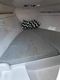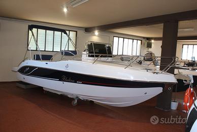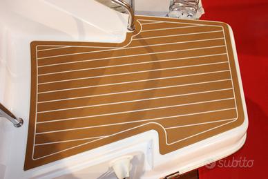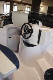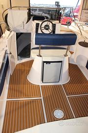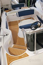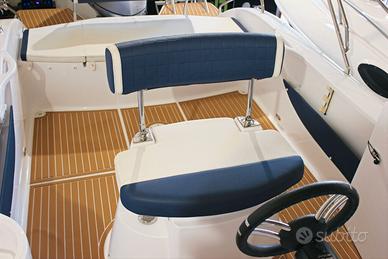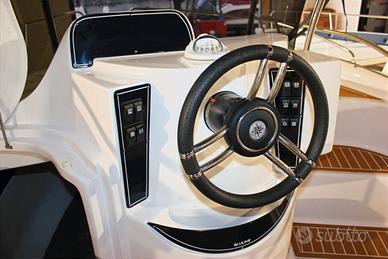 Cabina con 2 posti letto e WC elettrico | Presa 12V | Salpa ancora elettrico con 30 mt di cima e catena | Timoneria idraulica | Bitte laterali | Passo d'uomo | Tavolino | Frigorifero | Lavandino | Serbatoio benzina con indicatore livello carburante | Tendalino sole in acciaio inox | Tromba | Luci di via | Asta 360° | Scaletta di risalita | Fascia colorata blu | Pompa di sentina | Cuscineria completa con prolunga poppiera | Doccia | Bottazzo in inox | Piastra proteggi prua in inox | Plancette poppiere in vetroresina | Tasche laterali portaoggetti | Pozzetto autosvuotante statico con ombrinali in inox | Luci di cortesia LED azzurre | Scafo inaffondabile