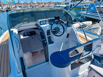 CABINA CON 3 POSTI LETTO, bagno in locale separato wc elettrico, cucina completa di fornello a gas, lavandino e frigo con cella freezer, bussola, SALPA ANCORA ELETTRICO MUNITO DI 30 MT di CATENA e ancora, PASSO D'UOMO, 2 oblò laterali, TAVOLINO, SERBATOIO BENZINA CON INDICATORE LIVELLO CARBURANTE ,TROMBA, LUCI DI VIA, ASTA 360°, LUCI LED AZZURRE DI CORTESIA, SCALETTA RISALITA, FASCIA COLORATA BLU, POMPA SENTINA CUSCINI COMPLETI + PROLUNGA prendisole POPPIERA, BOTTAZZO IN INOX, PROTEGGI PRUA INOX, PLANCETTE POPPIERE IN VETRORESINA, POZZETTO AUTO SVUOTANTE, IMPIANTO DOCCIA, impianto banchina, impianto elettrico con 2 batterie e stacca batterie a 4 fasi, stereo 4 casse, presa usb, presa 12v , VHF con antenna, fascia colorata BLU, volante con timoneria idraulica, porta accesso cabina con serratura, finiture pregiate in teak sintetico.