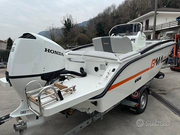 Barca open BMA X 199 nuova 2026 caratteristiche tecniche: lunghezza ft 590 larghezza ft 225 peso a vuoto 750 kg portata persone n.7 dotazioni standard: bitte acciaio Sport blower consolle con seduta corrimano acciaio inox e acciaio verniciato luci navigazione musone inox a prua pompa di sentina automatica scaletta poppa seduta pilota Sport serbatoio 90 lt. stacca batteria tessuto Sport volante Sport Motore HONDA BF 40 E LRTT Oppure BF 100A comando a parete strumentazione elica alluminio montaggio ed impianto 5 anni garanzia finanziamento in 24 mesi a tasso zero sull'importo del motore Prezzo PROMO EURO 28900,00 iva e motore bf40 inclusi Prezzo PROMO EURO 33900,00 iva e motore bf100 inclusi foto indicative DISPONIBILI ANCHE ALTRE MISURE X222 X266