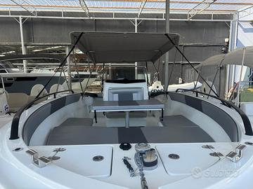 KIT PER DOPPIO CUSCINO CON ESTENSIONE PRENDISOLE DI POPPA, TASCHE LATERALI PORTAOGGETTI, VERRICELLO ELETTRICO CON ANCORA E CATENA,TENDALINO PARASOLE CON ARCHI INOX, PACK TOURING (COMPRENDE: TAVOLO E ESTENSIONE PRENDISOLE,TESSUTO LUXURY, VOLANTE TOURING, IMBOTTITURA SCHIENALE PRUA, SPOILER DI POPPA APRIBILE,GAVONE E PANCA AD U DI PRUA, POLTRONCINE PILOTI TWIN CON CONTENITORE) E EXTRA SEDUTA PILOTI CON DIVANO SUPER CONFORT.