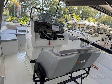 NUOVA IN PRONTA CONSEGNA BMA X222+ HONDA 200CV OPTIONAL: KIT PER DOPPIO CUSCINO CON ESTENSIONE PRENDISOLE DI POPPA, TASCHE LATERALI PORTAOGGETTI, VERRICELLO ELETTRICO CON ANCORA E CATENA,TENDALINO PARASOLE CON ARCHI INOX, PACK TOURING (COMPRENDE: TAVOLO E ESTENSIONE PRENDISOLE,TESSUTO LUXURY, VOLANTE TOURING, IMBOTTITURA SCHIENALE PRUA, SPOILER DI POPPA APRIBILE,GAVONE E PANCA AD U DI PRUA, POLTRONCINE PILOTI TWIN CON CONTENITORE) E EXTRA SEDUTA PILOTI CON DIVANO SUPER CONFORT. DISPONIBILE NEL NOSTRO SHOWROOM NUOVA IN PRONTA CONSEGNA