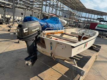 Boston Whaler 13 misure 4,10 per2,30 con motore 15 cavalli perfettamente funzionante, per il pescaggio può essere armato anche con un motore fino a 40 cavalli. Se di interesse, abbiamo le seguenti dotazioni: paioli di legno, cuscineria, mezzo marinaio, coppia di remi, scaletta e ancora.