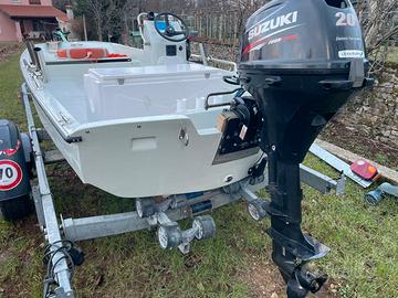 Vendo Boston whaler 13 con suzuki 20 cv Iniezione del 2014 con avviamento elettrico. Compreso di ecoscandaglio Garmin, supporto per motore di prua e telo copribarca su misura.La barca è stata restaurata neanche un anno fa. Tutto nuovo!