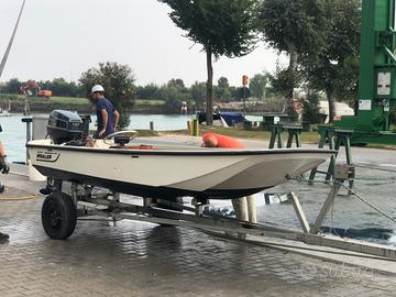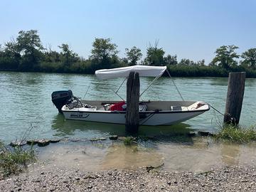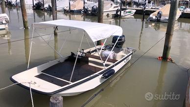 Barca tenuta molto bene, motore Evinrude 737 avviamento elettrico, due serbatoi da 22 litri, Bimini, poppa rialzata nel 2024 , timoneria completa nuova installata nel 2024,come da fattura allegata, batteria nuova, faro regolabile con joistick a prua,pompa di sentina automatica, scaletta acciaio, ecoscandaglio.