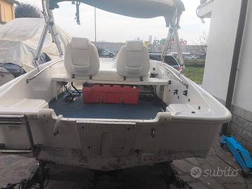 rimetto in vendita splendido boston whaler 15 sport anno 2012 in perfette condizioni usato prevalentemente in acqua dolce completo con tendalino originale con tubi alluminio da 50 mm con annesso attacco per trainare sci d'acqua con luci navigazione pompa sentina serbatoio 60 litri doccia cuscineria completa telo copri scafo igloo la barca e immacolata pari al nuovo più eventuale carrello ellebi trule chi fosse interessato lasci un suo contatto o scriva alla presente PS il prezzo esposto e relativo al carrello