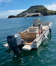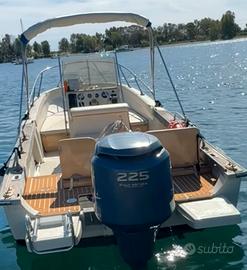 Vendesi completo di motore Yamaha 225 4 tempi. Prendisole ampio a prua e seduta posteriore con schienale abbattibile per altri 2 posti prendisole a poppa, ecoscandaglio, tendalino ancorato sulla battagliola, ancora con 6mt catena, doccetta di acqua dolce ubicata a poppa. Serbatoio acqua dolce nel gavone di prua, n.2 pompe di sentina, n.2 ampie placette di vetroresina con scaletta posizionate sullo specchio di poppa. Possibilità di acquisto senza motore € 13.000