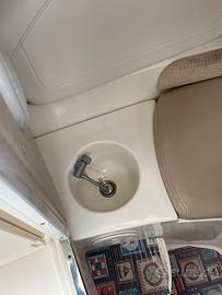 Cuccetta con 2 posti letto, WC portatile con maceratore e scarico fuori bordo, lavello .