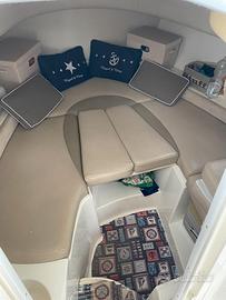 Verricello elettrico con ancora, catena e cima, imbottiture laterali poppa , Hard Top, Set teli per chiusura Hard Top, stereo, copri sedili pilota , Caricabatterie con presa e cavo di banchina, Vasca del vivo, sistema lavaggio pozzetto con acqua salata, pulpito di prua apribile.