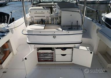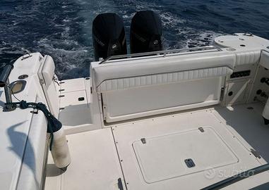Boston Whaler 28 Outrage del 2000 Motori: 2x 250 CV Mercury Verado (nuovi del 2020) con 440 ore Lunghezza: 8,74m - Larghezza: 3,15m INTERNI E DOTAZIONI Cabina letto Doccia e WC Frigorifero 12-220V Serbatoi: Acqua 80L - Benzina 2x 560L T-top Salpa ancora Materassi prendisole Presa da banchina Tendini per sedia e console Vasche del vivo (per la pesca) N. 3 pompe da sentina N. 4 batterie Schermo multifunzioni 12 pollici Simrad NSS EVOS 3 Sonda TM 185M CHIRP XSONIC 10M Pilota automatico Simrad VHF con ricevitore portatile Idrosabbiatura scafo effettuata nel 2024. Revisioni motori sempre fatte dal concessionario Mercury, fatture disponibili (ultima 2026). Visibile a Mandelieu (Sud Francia) Per informazioni, contattare ROBERTO CARDEO al n. EBC YACHT Con noi puoi comprare o vendere la tua barca in modo semplice e affidabile. Offriamo servizi completi: trasporti marittimi, assicurazioni, perizie, finanziamenti e molto altro. Visita il nostro sito!