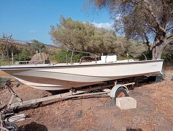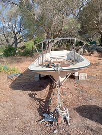 motoscafo senza documenti, compreso di carrello da sistemare, ancore, remi, luce gancio volante, 1 sedile da rifare, 2 tavole; prezzo trattabile