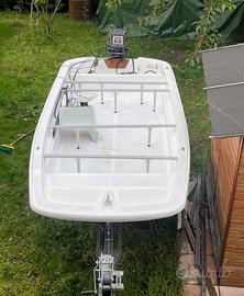 Vendo barca a motore pronta all’uso. 🔹 Scafo Boston Whaler Dory 13 piedi, ad ali di gabbiano, inaffondabile, molto stabile e con entrata in planata immediata. 🔹 Motore Johnson 521 25 CV portato a 35 CV, 2 tempi, poche ore di navigazione, tagliandato a settembre 2023. Girante da sostituire (cambiata nel 2023). 🔹 Carrello stradale omologato, basculante non frenato, portata 750 kg, da revisionare. 🔹 Dotazioni: batteria avviamento, pompa di sentina automatica con galleggiante, pianalatura a prua e poppa, 2 ampi gavoni, moquette nautica blu, sgabello di prua, serbatoio carburante 25 litri. 📍 Ritiro a Varese 💰 Prezzo trattabile dopo visione dello scafo