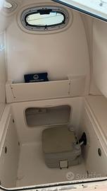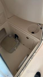 Verricello elettrico 700W con ancora e catena con comando anche a prua, Prendisole prua con cuscineria completa, panca con cuscino pieghevole a poppa,