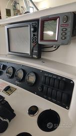 autoradio Clarion con 4 altoparlanti, ecoscandaglio Eagle 168 EX, GPS Geonav 11 Flash, VHF Icom,
